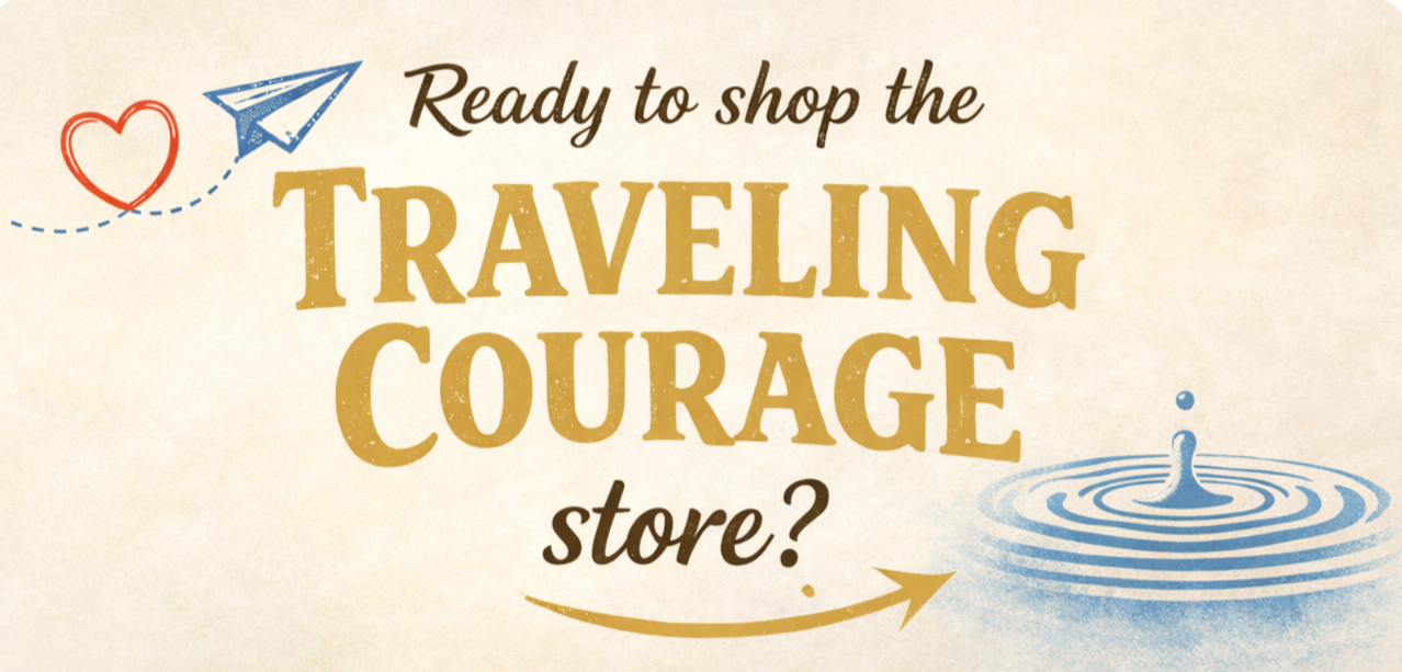 If you have feedback, ideas for new Traveling Courage items, or thoughts about partnerships and collaborations, please reach out. The Traveling Courage movement is built on community, and your ideas help the ripple grow.